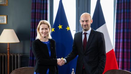 Ministro de Asuntos Exteriores francés, Jean-Noël Barrot, junto a la Alta Representante de la Unión Europea para Asuntos Exteriores y Política de Seguridad, Kaja Kallas.