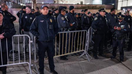 Decenas de policías hacen guardia antes de una protesta organizada en respuesta a la muerte a tiros de Renee Nicole Good .