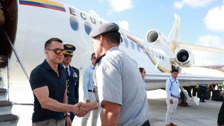 El presidente de Ecuador, Daniel Noboa, durante su arribo a Estados Unidos en el penúltimo viaje que realizó.