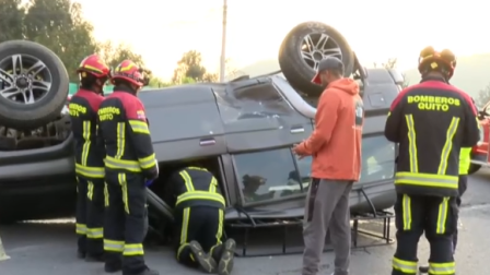 Según Gabriel Zambrano, suboficial del Cuerpo de Bomberos de Quito, testigos indicaron que él circulaba a exceso de velocidad y habría chocado al automóvil que terminó volcado.