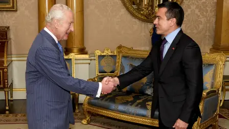 Noticias 06 May 2025 - 13:25 Daniel Noboa fue recibido por el rey Carlos III en el Palacio de Buckingham