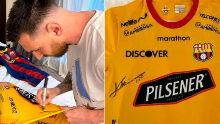 Lionel Messi firmó la camiseta de Barcelona de Ecuador
