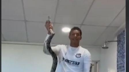 Una serpiente sorprende a los jugadores de Emelec