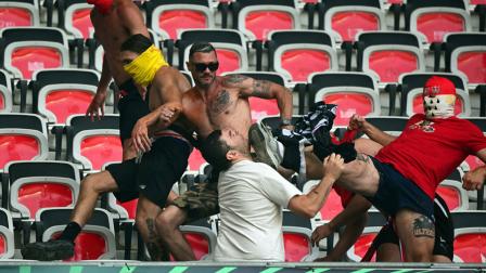 La prefectura de los Alpes Marítimos confirmó que fueron los hinchas alemanes los que "cargaron" contra los locales. En medio de las gradas se produjo una batalla campal, con aficionados agrediendo a otros con sillas y barras de metal arrancadas del estadio, constataron los periodistas de la AFP presentes.
